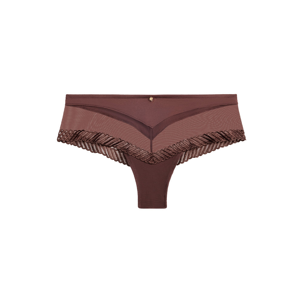 Alliant modernité et simplicité, la culotte brésilienne, avec sa taille mi- haute et ses lignes flatteuses, séduit par son esthétisme. Elle dévoile juste ce qu’il faut pour une allure tout en finesse. Cette culotte embrasse doucement les hanches sans n’en révéler trop, exprimant ainsi une élégance intemporelle. La culotte brésilienne danse légèrement autour de vos hanches et suit toujours le rythme de vos mouvements.